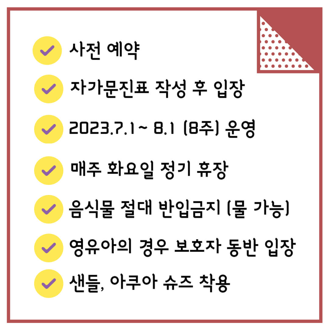 2023.7.1(토요일) ~ 2023.8.27(일요일) 8주 동안 운영이 됩니다.