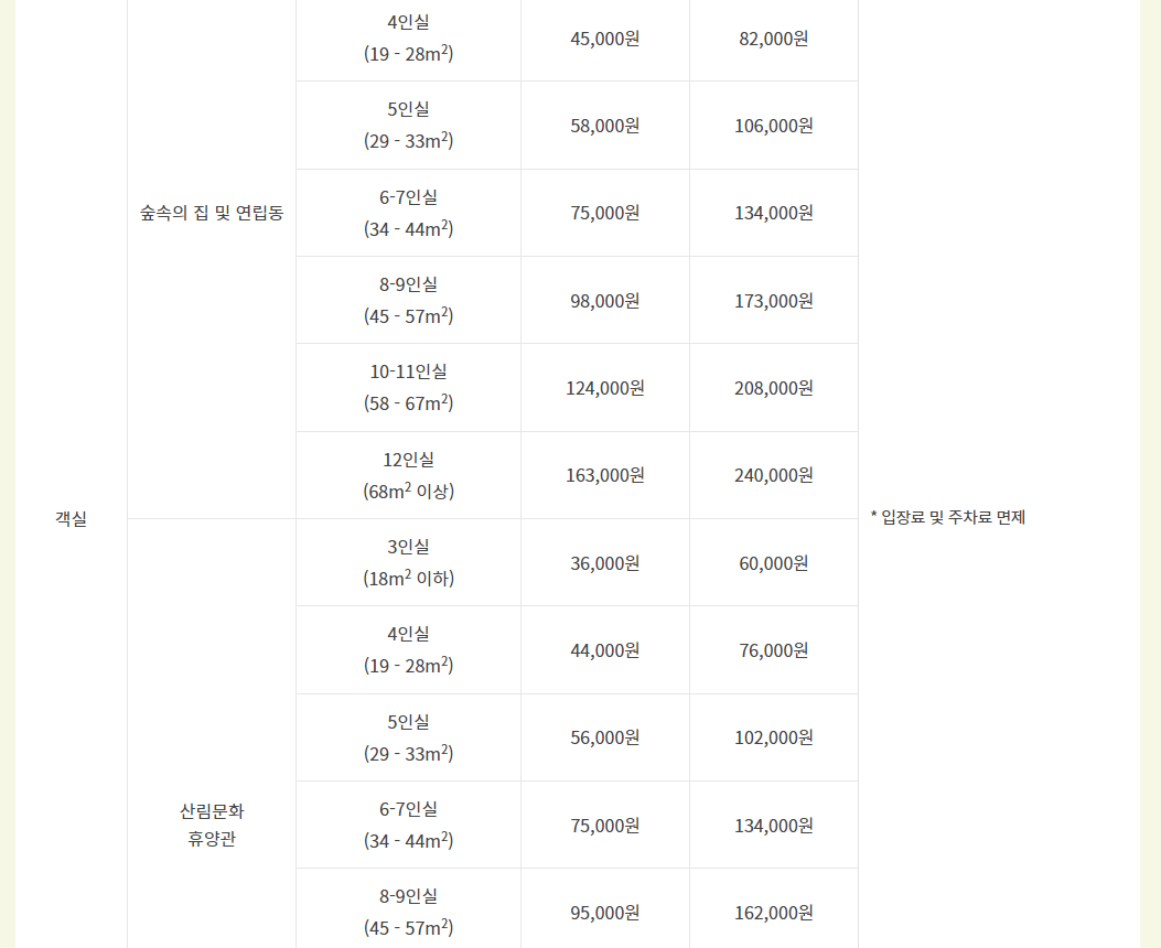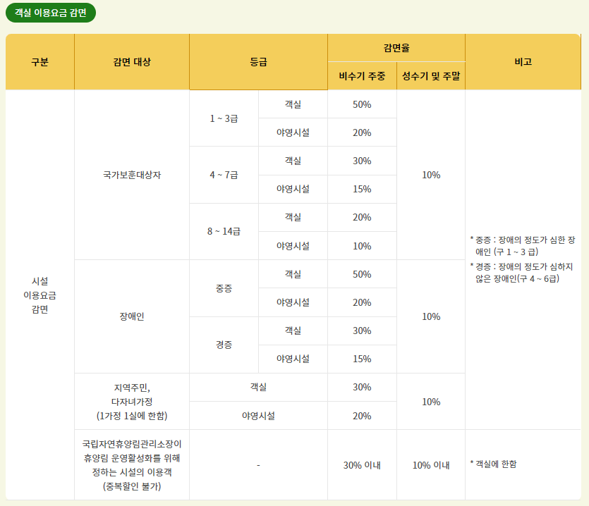 - 지역주민 - 지역 휴양림 각가 다를 수 있습니다.