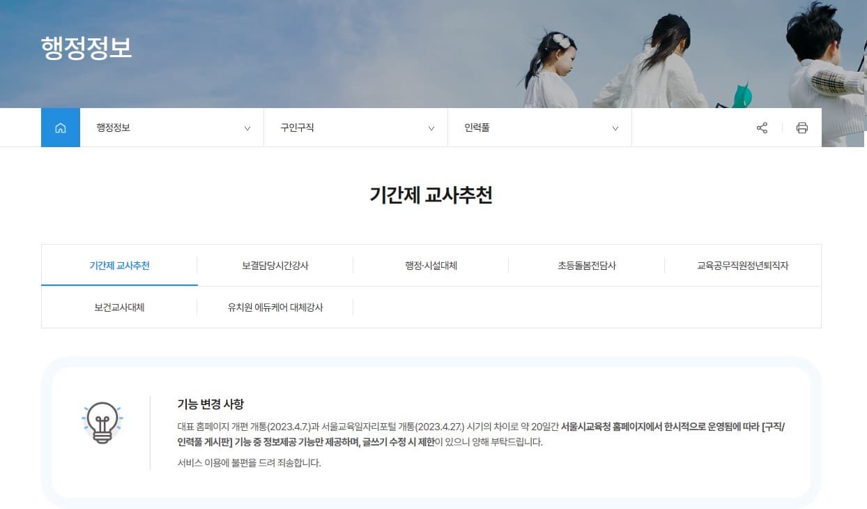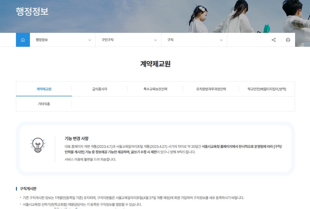기존 구직게시판 정보는 1개월만 유지되고, 구직자분들은 서울교육일자리포털에 구직정보를 새로 등록하시길 바랍니다.